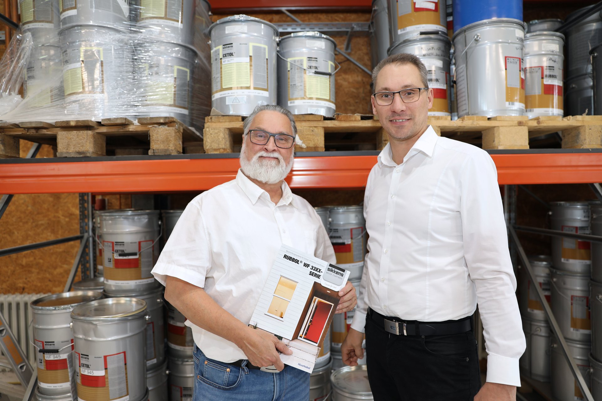 Gemäß dem Firmenmotto „Gemeinsam gehen wir voraus“ hat Sikkens Wood Coatings Fachberater Bernd Abid Bünger Andy Mrowiec in der Umsetzung im Detail unterstützt und einen weiteren Schritt in Richtung Zukunft realisiert. Ausgangspunkt war die im Jahr 2019 neu erstellte Werkhalle für die Oberflächenbehandlung. Hier werden alle Holzfenster, Türen und Fassadenelemente per Spritzroboter lackiert. In der Halle ist zudem eine Luftbefeuchtungsanlage im Einsatz, um konstant optimale Bedingungen zu halten. Im rechten Hallen- und Anlieferbereich steht nun das Sikkens Wood Coatings Tinting Area mit der Sikkens Wood Coatings Color Mix Mischmaschine, den Basen und Pasten. „Bei einem Output von circa 8.000 bis 12.000 Fenstereinheiten pro Jahr braucht es ein entsprechendes Volumen an Lacken und Lasuren. Durch die Nutzung der Color Mix Anlage ist die Bevorratung sehr wirtschaftlich geworden“, betont Andy Mrowiec. Die Basen für den kompletten Beschichtungsaufbau von der Grundierung bis zur Schlussbeschichtung werden palettenweise im neuen Hochregallager eingestellt und in auftragsbezogenen Mengen mittels der Pasten in der Mischanlage abgetönt. Für die Color Mix-Mischmaschine werden nur die besten Farbpasten auf Wasserbasis verwendet, so wird jeweils für einen gleichbleibenden und stabilen Farbton gesorgt.