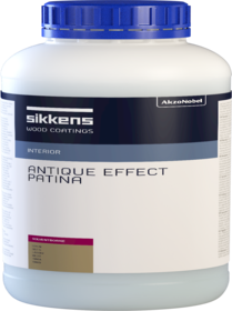 La patina a base solvente viene sempre applicata su un fondo. Viene fornita con una gamma di 11 coloranti da aggiungere Harmonizing Stain base per produrre colori diversi e conferire un effetto anticato o di design.